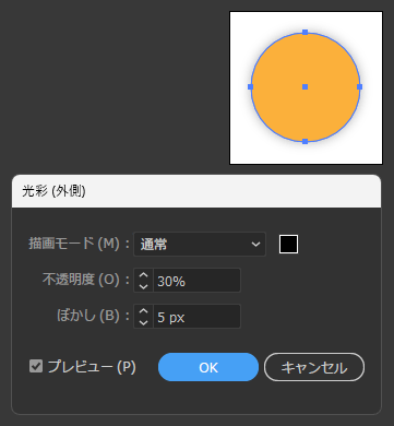 | 境界線 | 光彩をどこから開始するかの指定です。「境界線」を選択します。 |